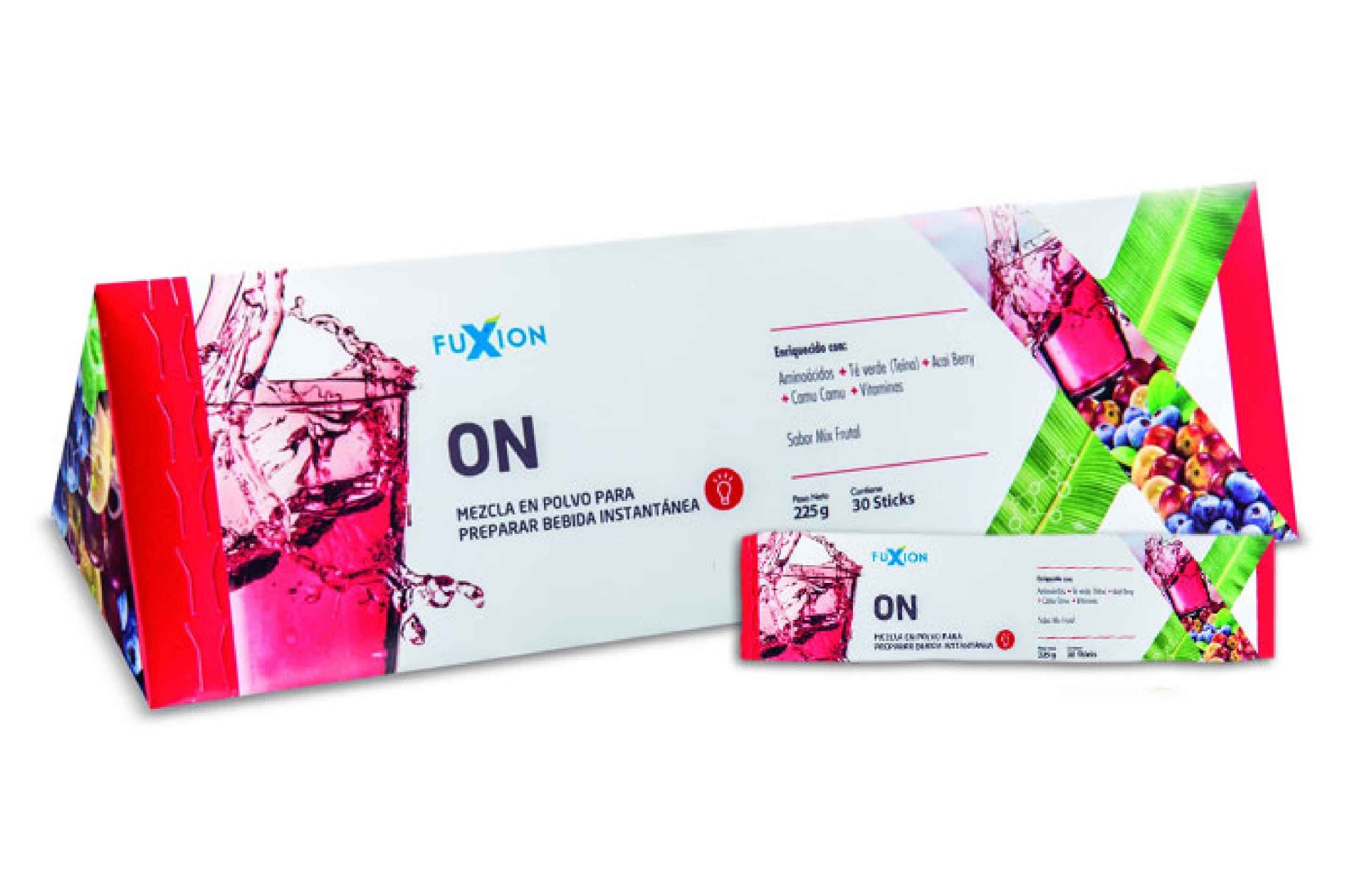 Bebida funcional, sabor a Frutilla, combinación natural de estratos herbales y frutales, vitaminas y aminoácidos, Los beneficios de su consumo mejoran la memoria, la capacidad de concentración y el rendimiento intelectual. Óptima nutrición cerebral, protegiendo a las neuronas con una Altísima capacidad antioxidante. Contiene Taurina, estimulante del sistema nervioso central. Se logra el máximo rendimiento cerebral, pudiendo alcanzar largas jornadas de trabajo intenso por horas. Acai Berry, reduce el estrés y la ansiedad, incrementa la energía corporal y brinda vitalidad. Fortalece el sistema nervioso. Camu Camu, su capacidad anti oxidante protege el cerebro y sistema nervioso. La teina del Té verde es conocida por disipar la sensación de fatiga y mantener la mente despierta. adicional mente contribuye a estimular la memoria y la concentración.
