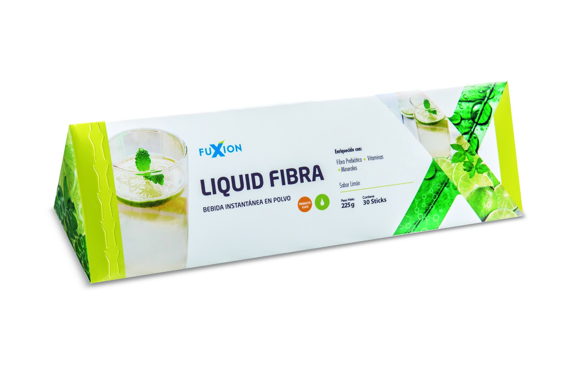 Bebida funcional sabor limonada, Suplemento de fibra dietética y prebiótica. Garantiza una correcta depuración intestinal y el adecuado ritmo natural de evacuaciones intestinales durante el día.
